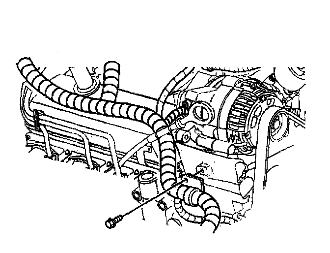 70. Remove the bolt holding the engine wiring harness clip to the rear of the right cylinder head.