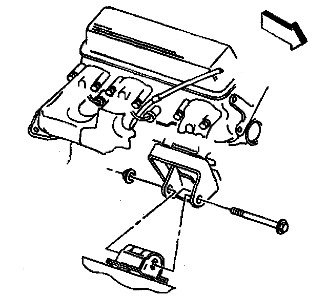 15. Install the fuel pipe bracket and stud to the rear of the left cylinder head.