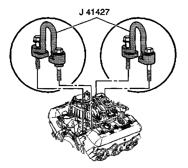 58. Place a jack stand under the transmission crossmember to prevent the engine/frame assembly from tipping off of the J 39580.