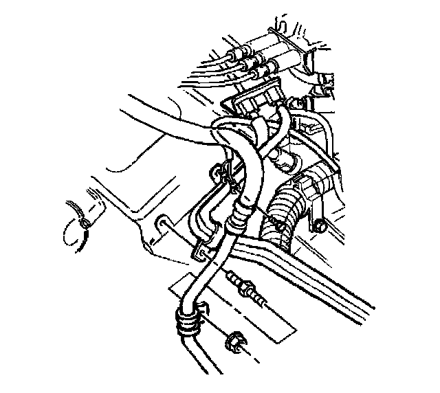 6. Disconnect the air conditioning hose at the accumulator and the condenser, if equipped.