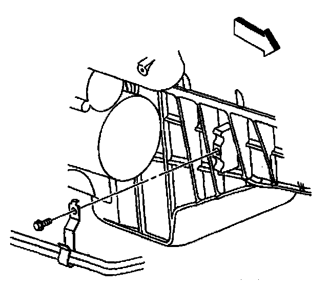 21. Disconnect the negative battery cable from the battery. Disconnect the battery cable assembly from the fender and the radiator support.