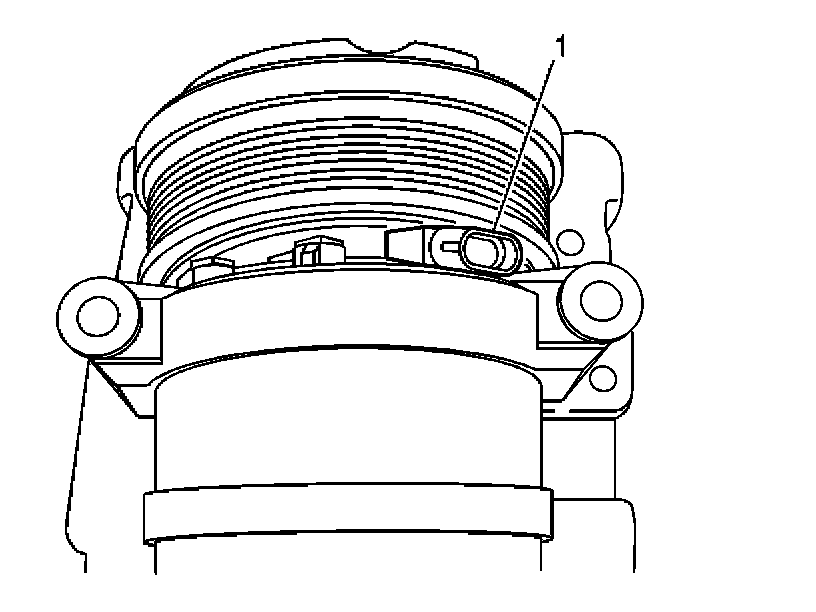 9. Mark the clutch coil terminal location (1) on the compressor front head.