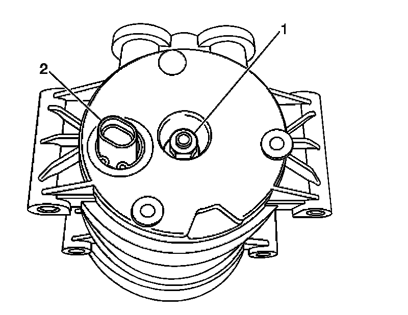 9. Connect the electrical connector (2) to the A/C compressor high pressure cutoff switch.