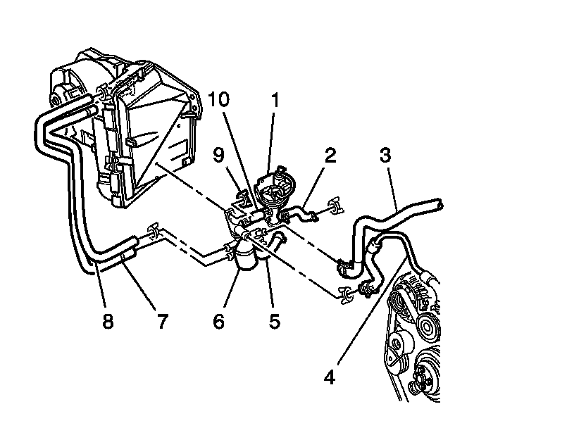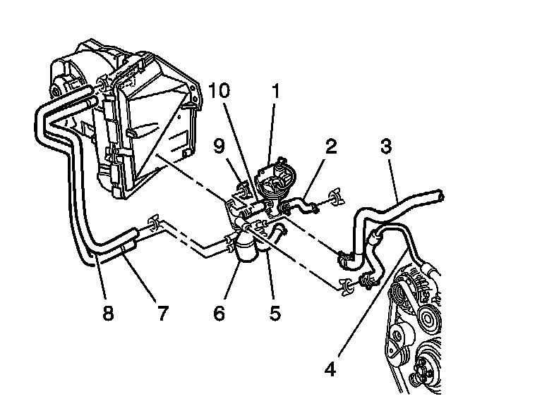 6. Remove the heater inlet hose (8) from the water bypass valve.
