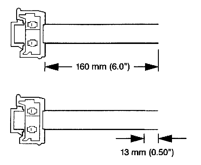 7. Strip 13 mm (0.5 in) of insulation from each of the connector wire leads.