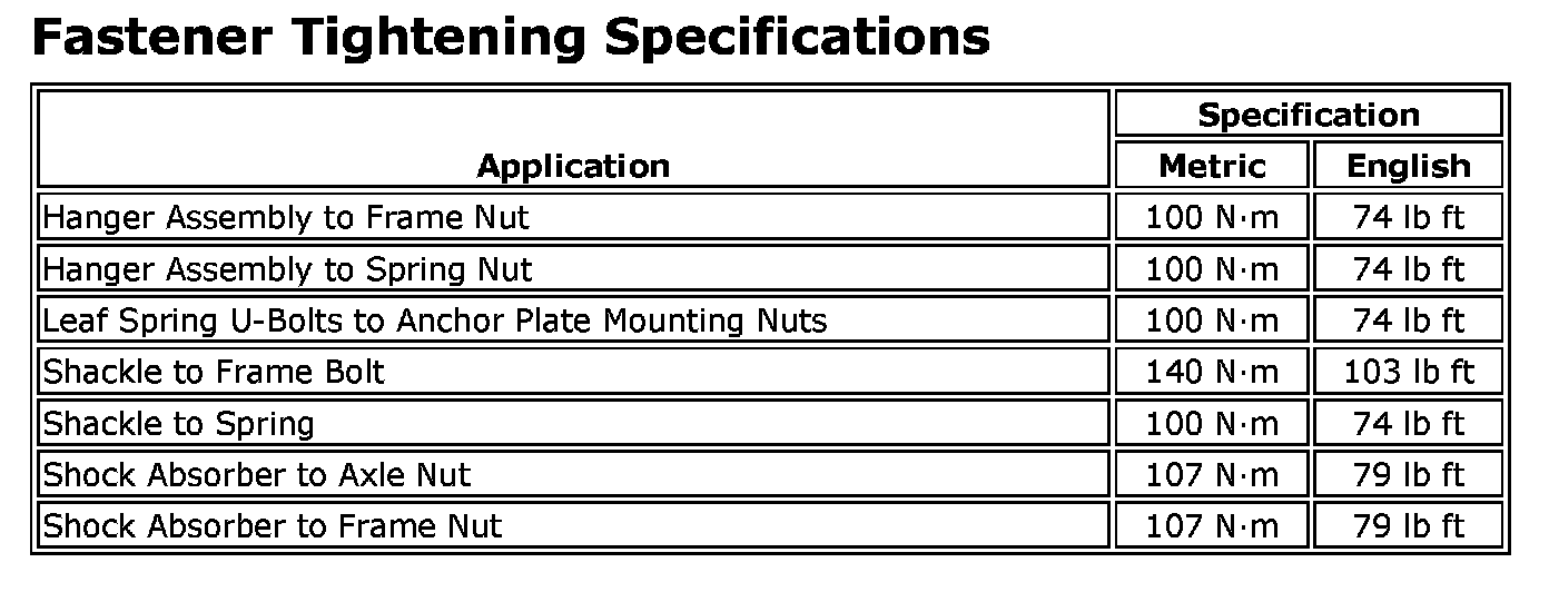 Fastener Tightening Specifications