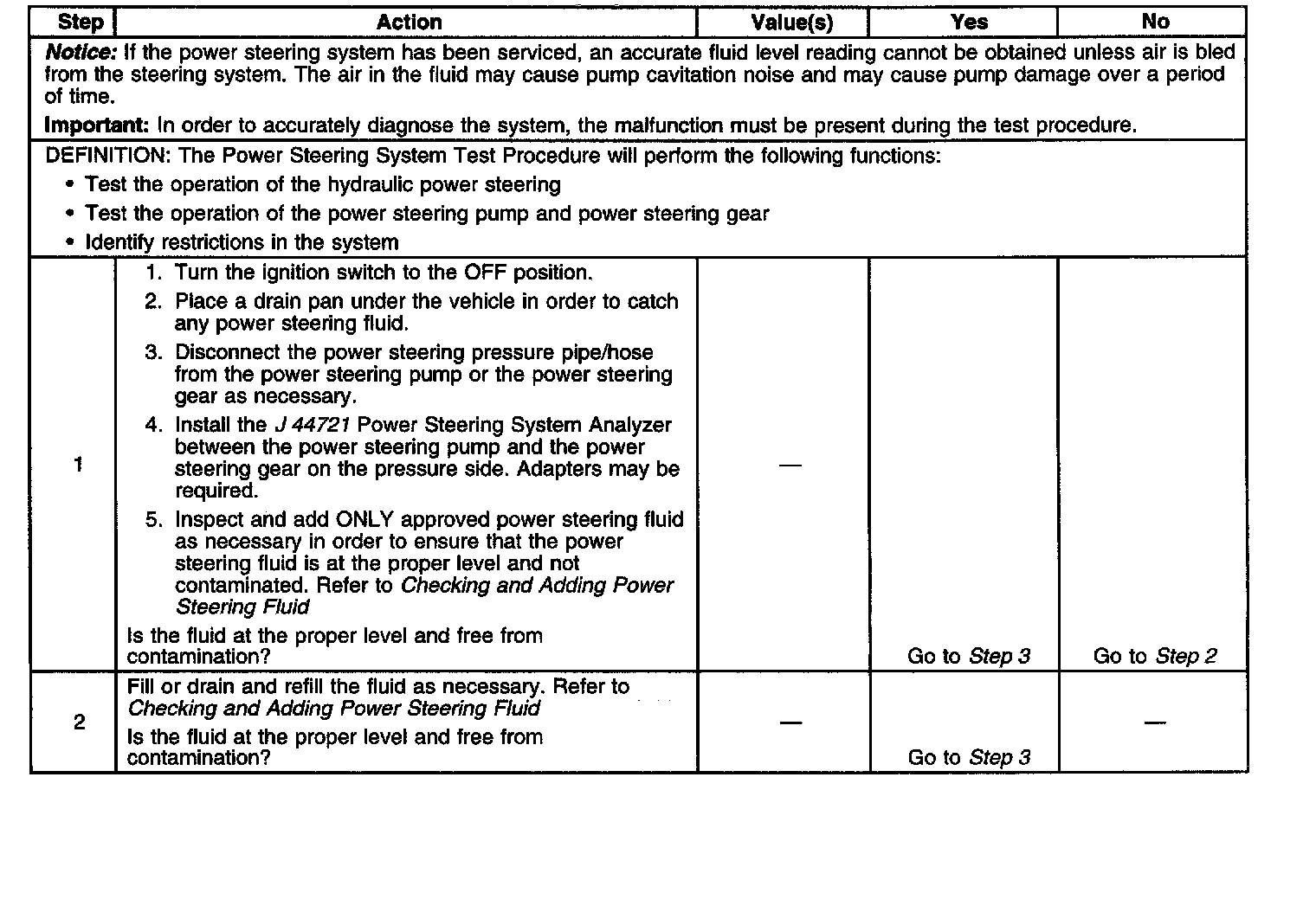 Power Steering System Test Procedure