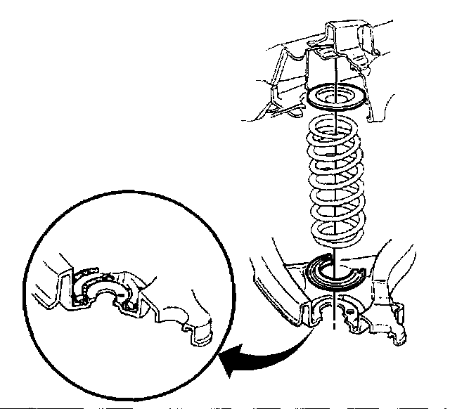 8. After all compression is removed from the coil spring, remove the coil spring and coil spring insulators from the vehicle.