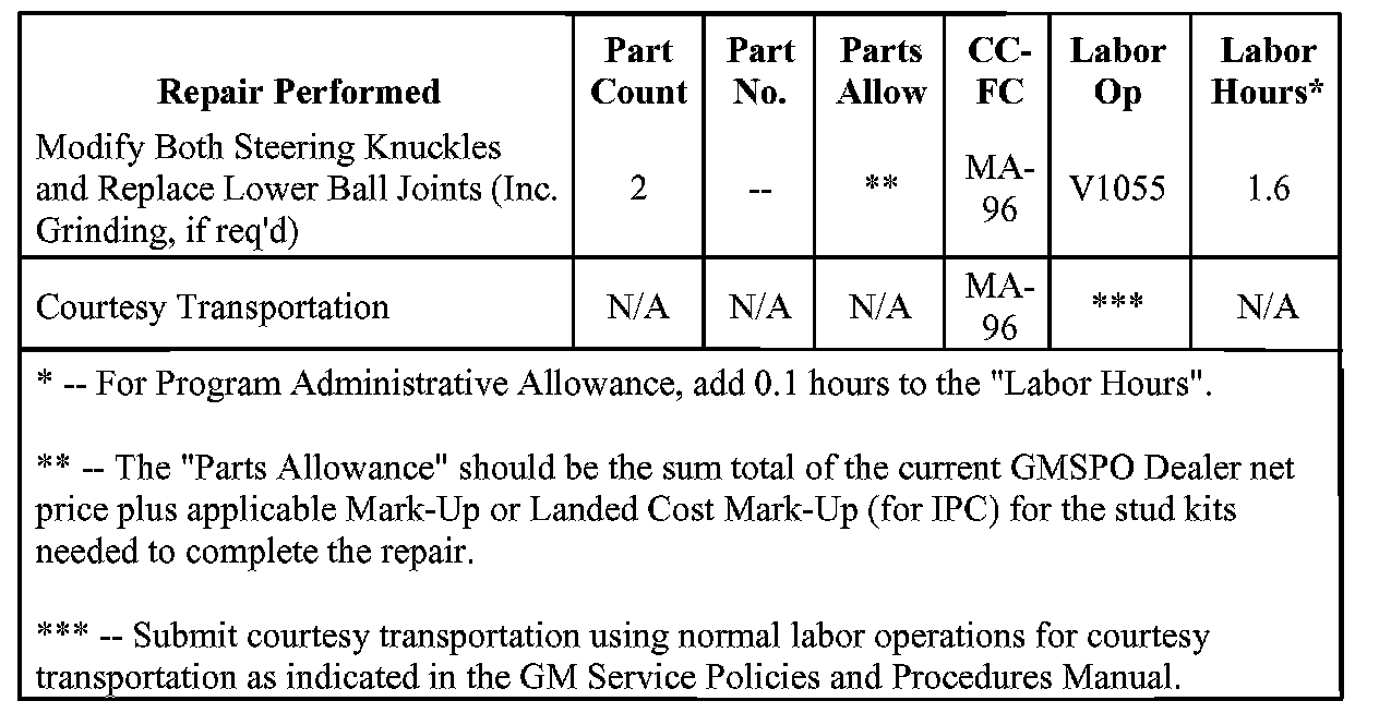 Dealers are to modify the steering knuckles and replace the lower ball joints.