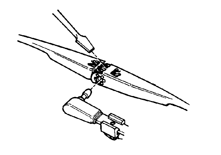 2. Pivot the screwdriver so that the blade tip presses downward on the retainer spring and releases the wiper blade from the pin of the wiper arm.