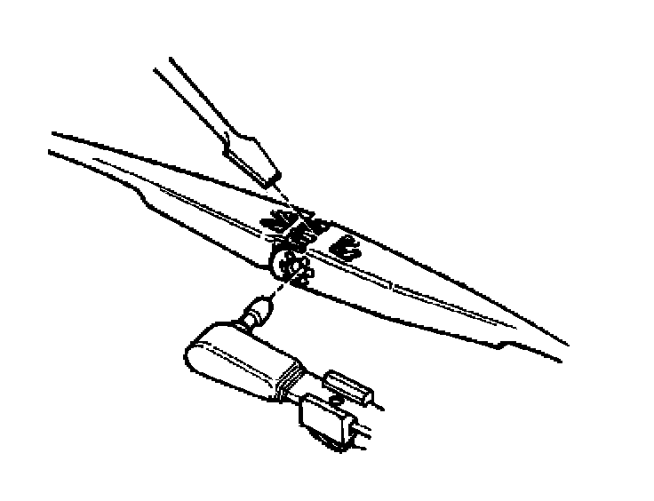 2. Pivot the screwdriver so that the blade tip presses downward on the retainer spring and releases the wiper blade from the pin of the wiper arm.