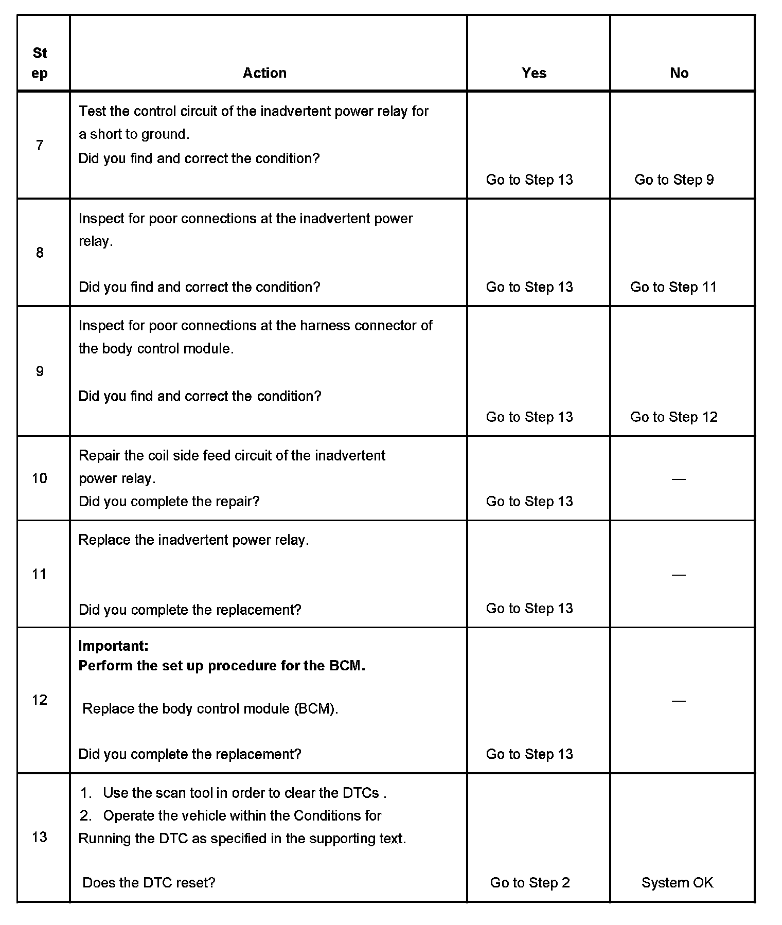 - When the inadvertent power relay control circuit is shorted to ground.