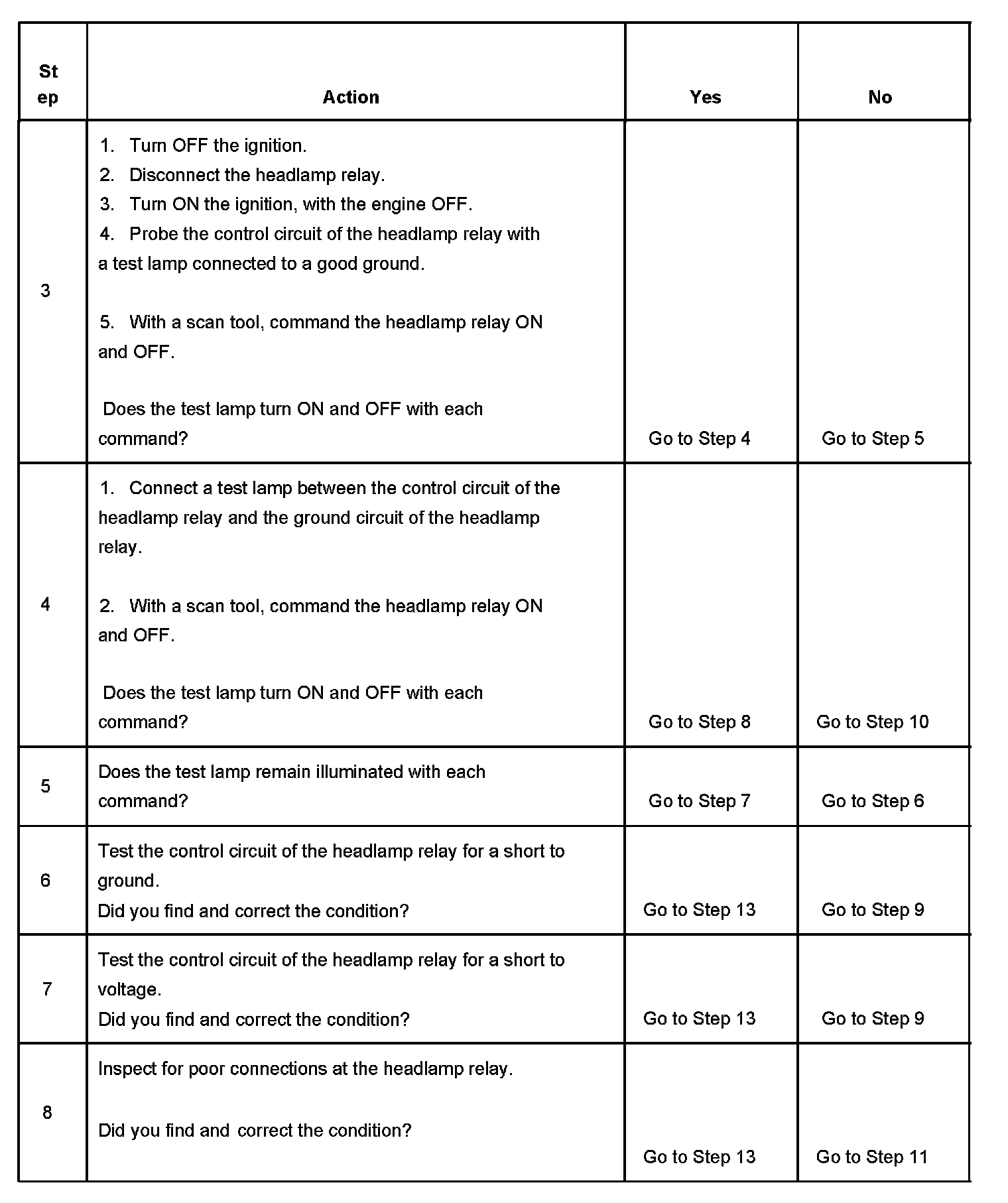 4. Tests for an open in the ground circuit to the headlamp relay.