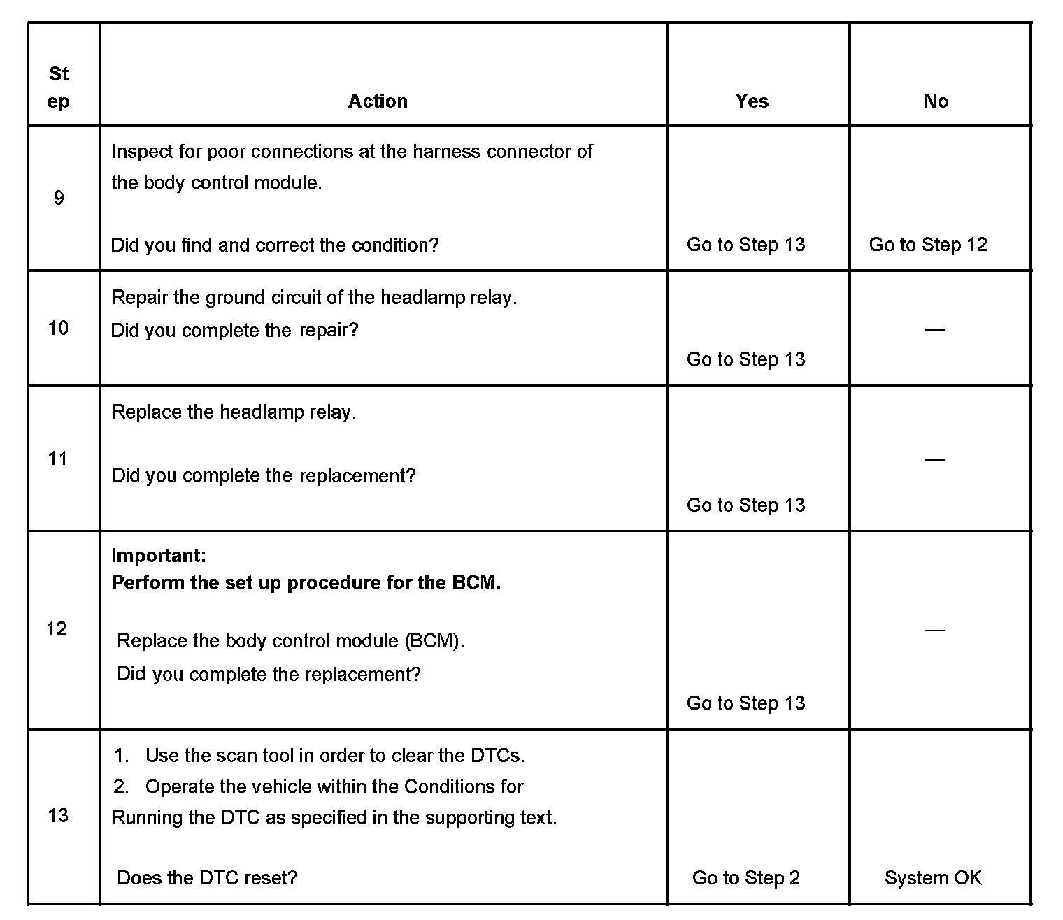 - The DTC will clear immediately after the short to ground on the headlamp relay coil supply voltage circuit is repaired or the next fault free ignition cycle.