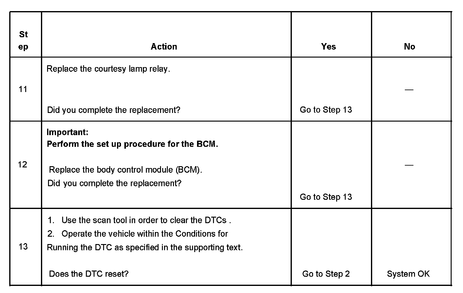 4. Verifies that the body control module is providing ground to the courtesy lamp relay.