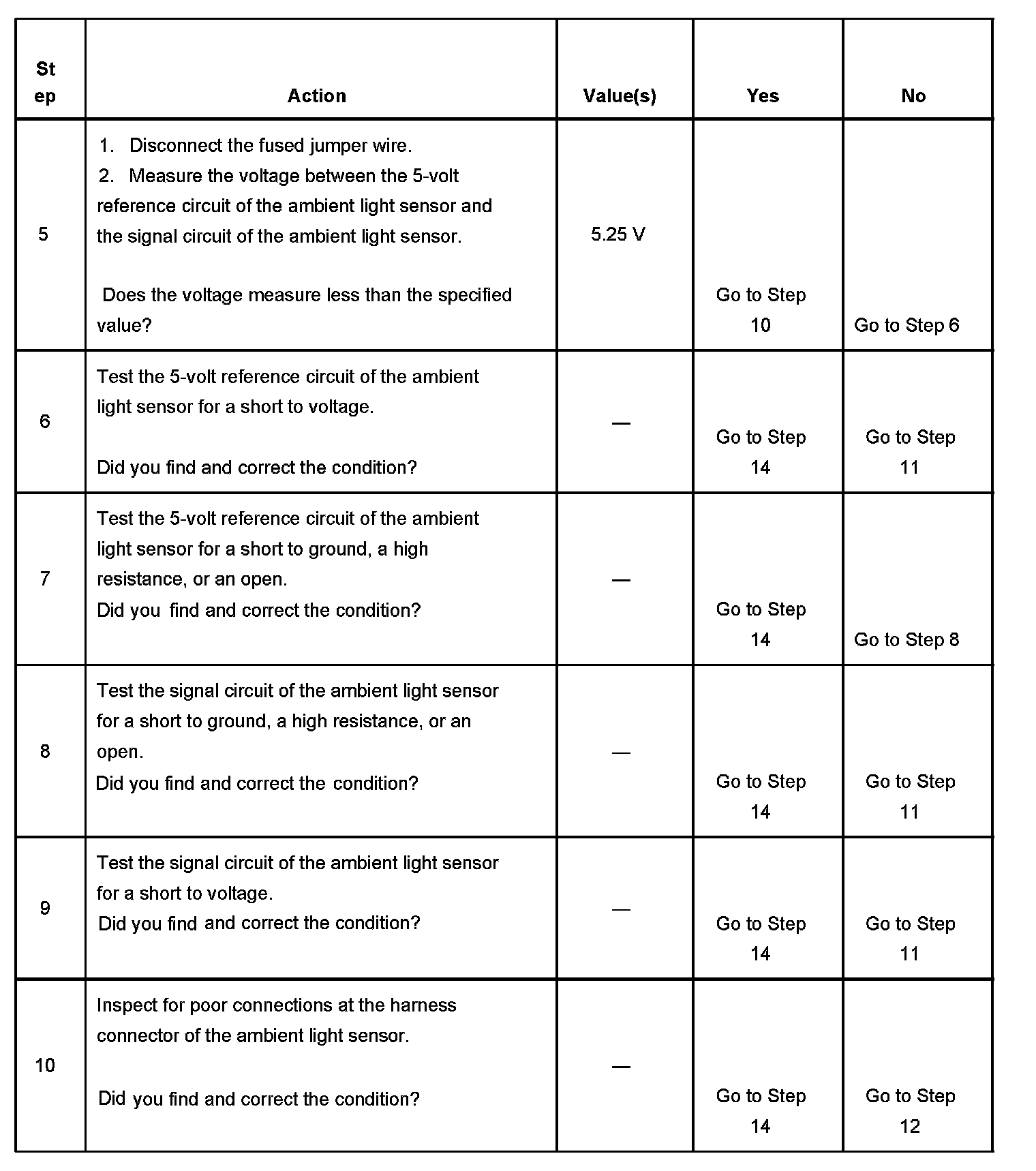 - When the ambient light sensor input voltage is greater than 4.78 volts.