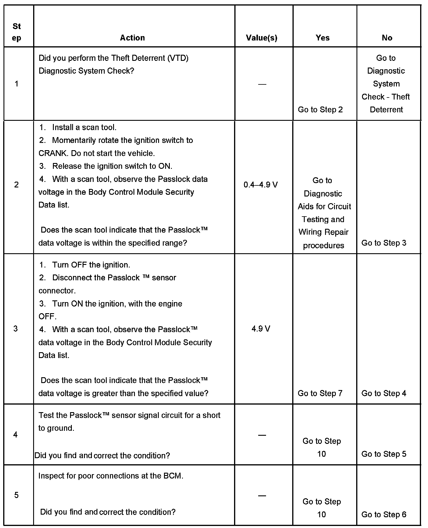 - Use a scan tool in order to inspect the Passlock(TM) data voltage and the Passlock(TM) code.