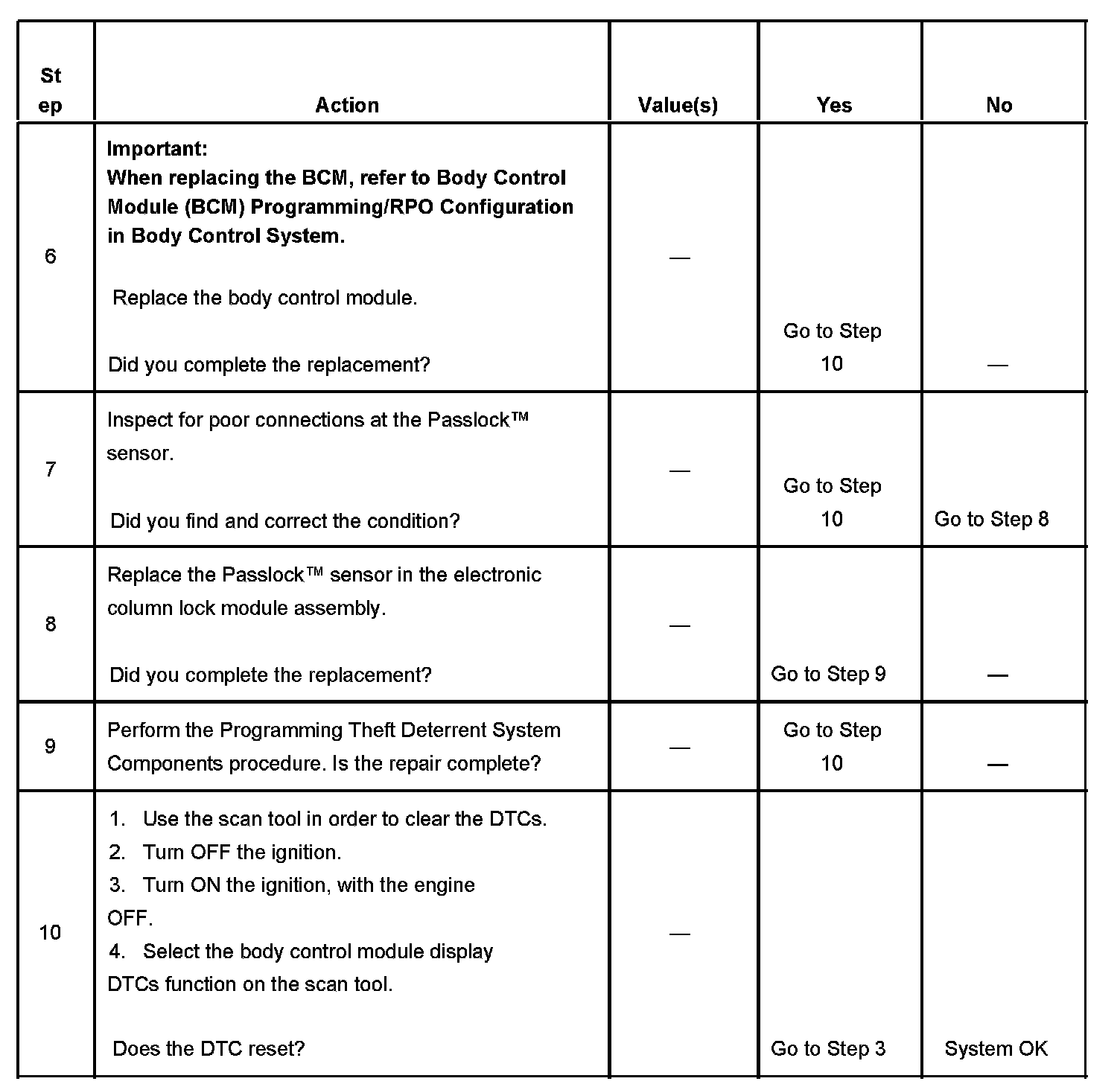 - Inspect the Passlock(TM) sensor harness for an intermittent or a short to ground.