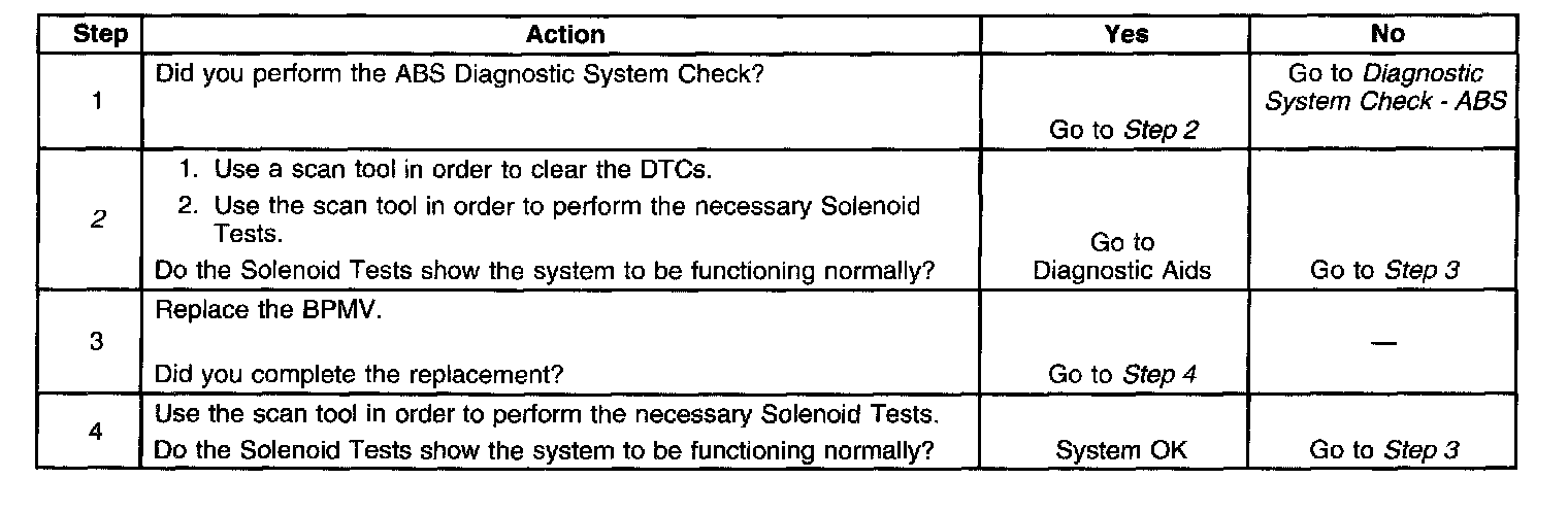 2. Performing solenoid tests determines if there is a mechanical malfunction inside the BPMV. Perform dump valve solenoid tests for DTC C0269 or isolation valve solenoid tests for DTC C0274.