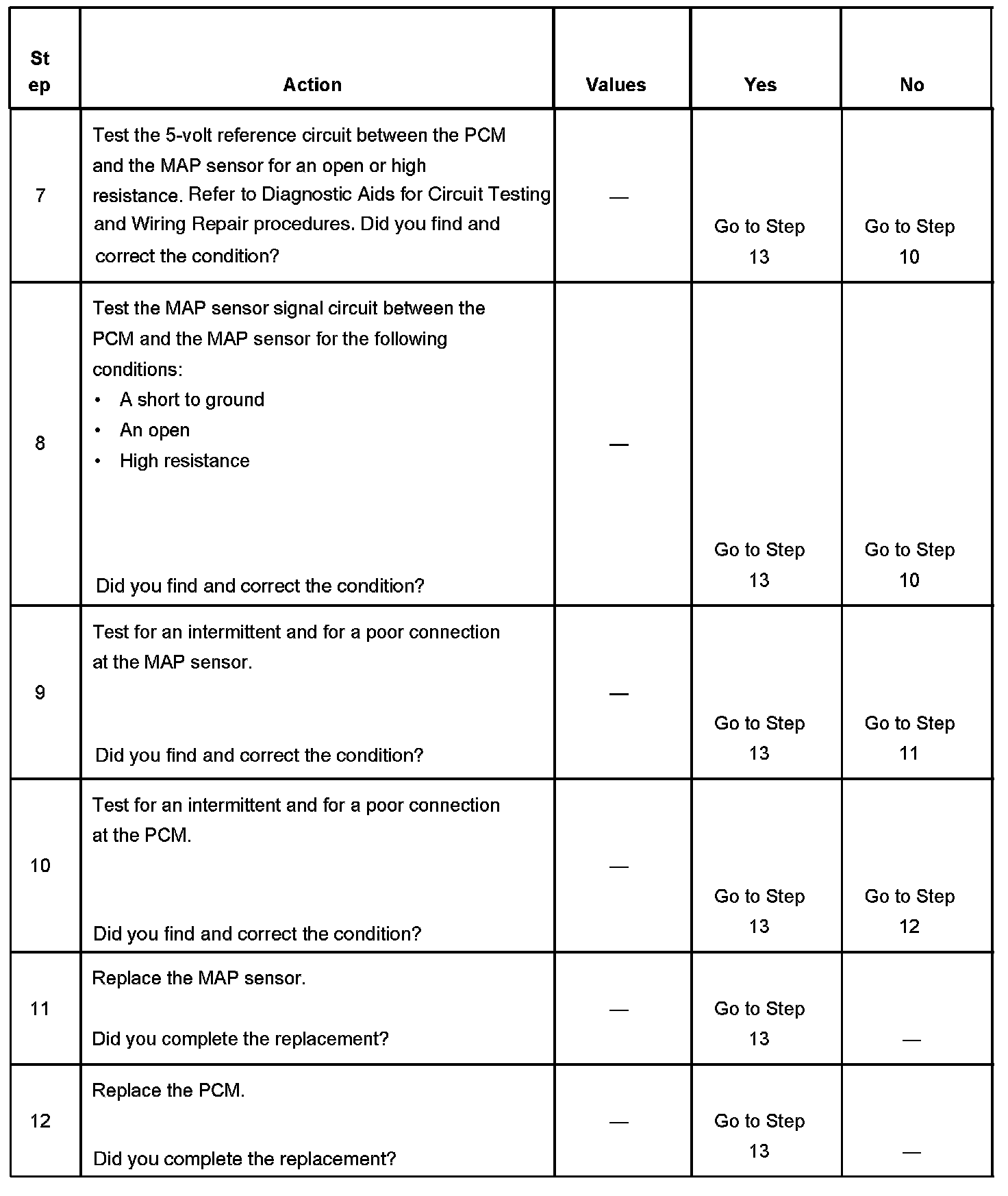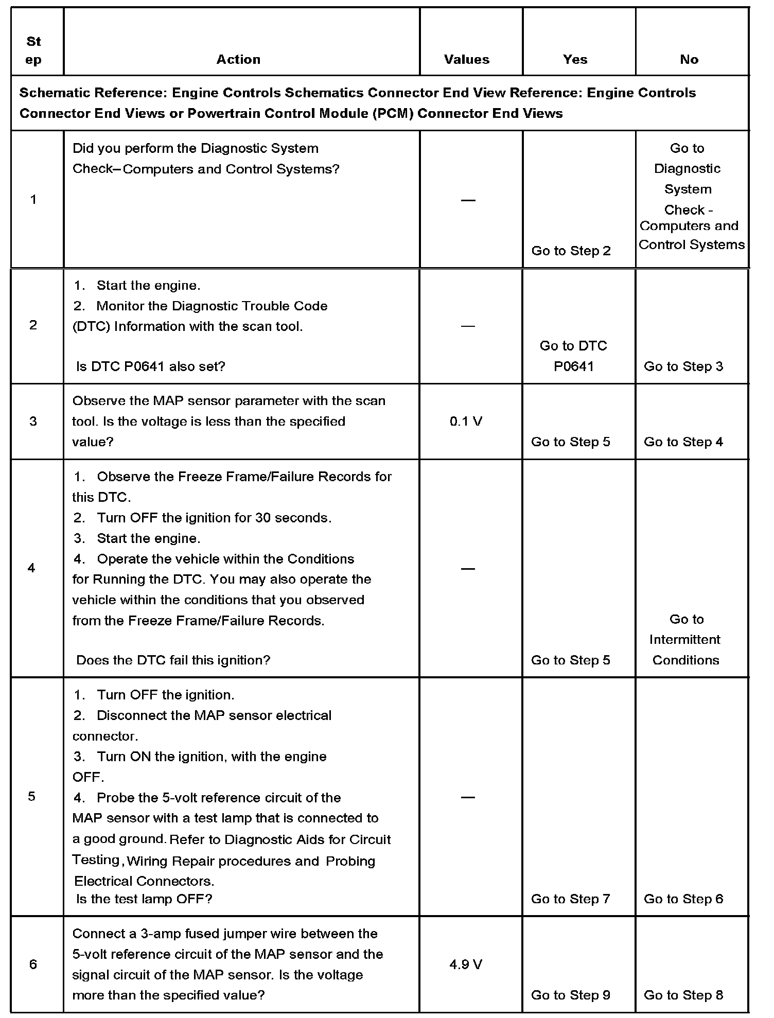 The numbers below refer to the step numbers on the diagnostic table.