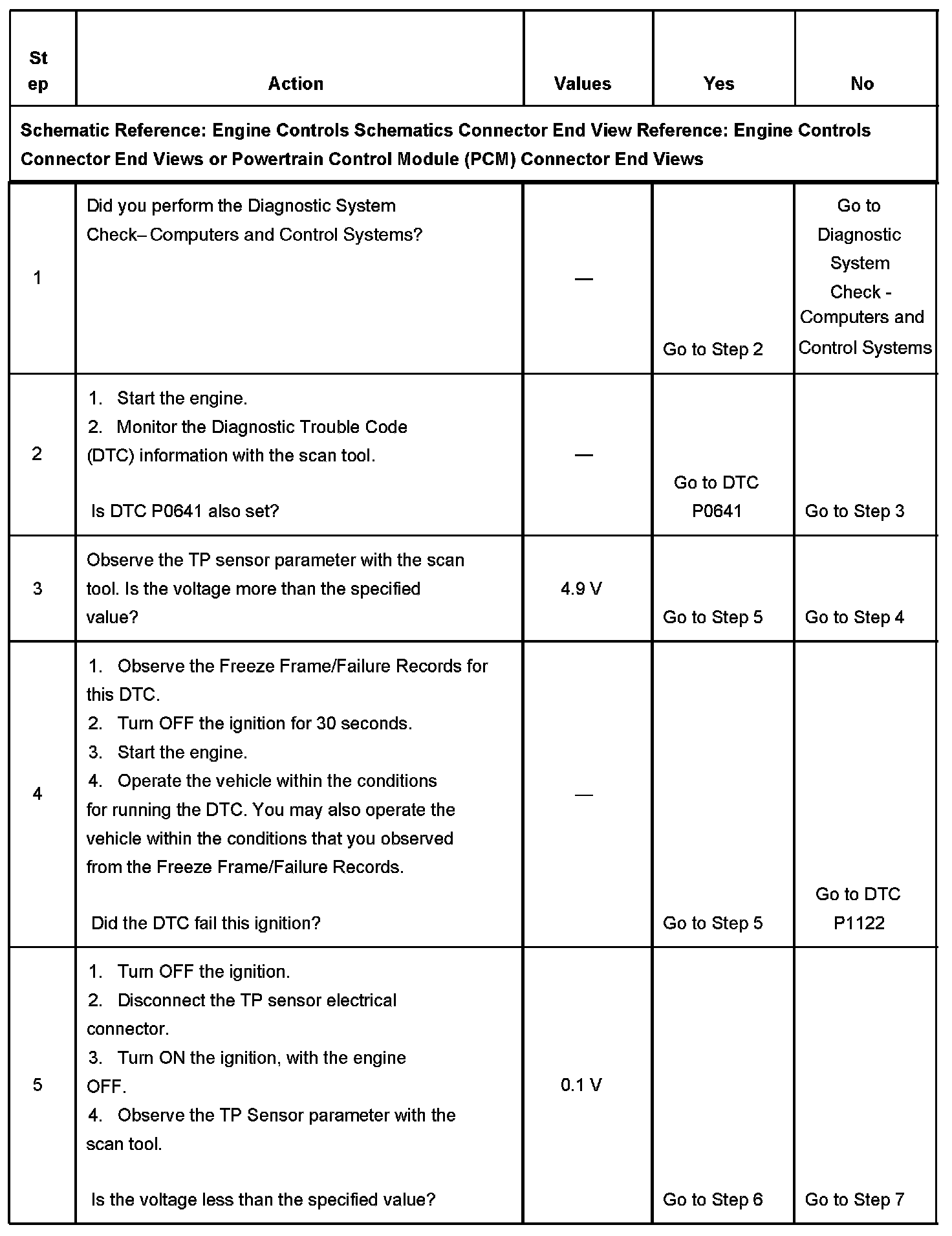 The PCM detects that the TP sensor voltage is less than 4.9 volt for more than 1 second.