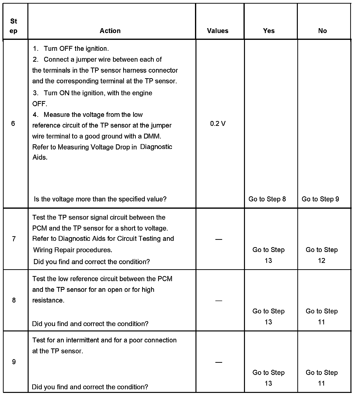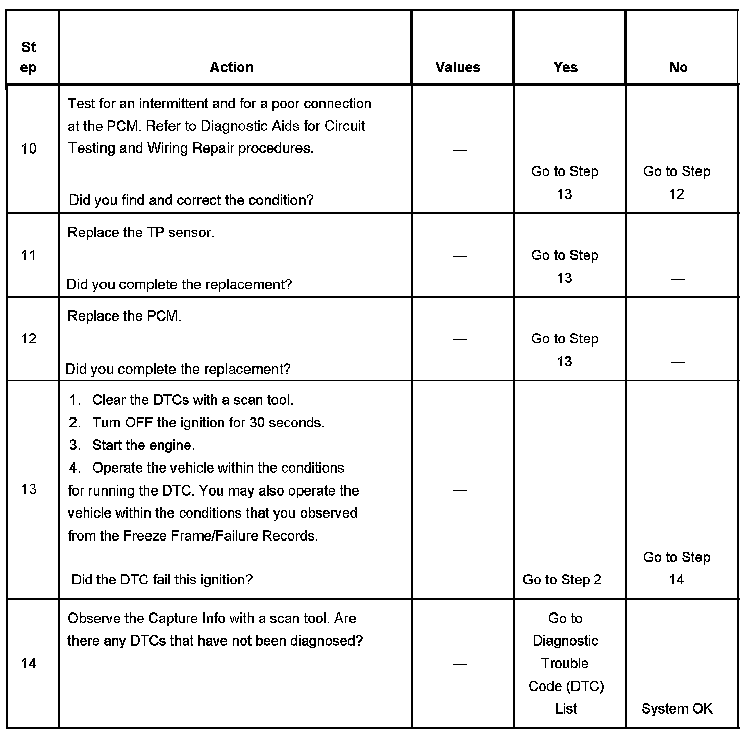 The number below refers to the step number on the diagnostic table.
