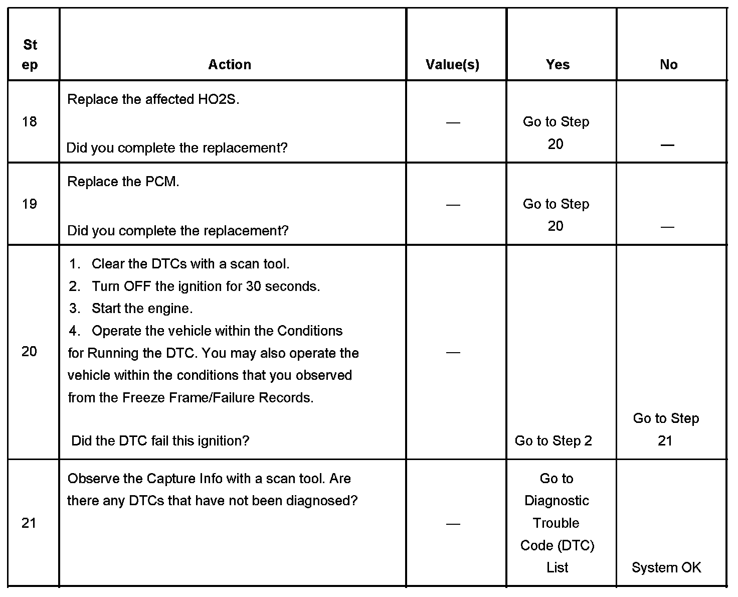 CIRCUIT DESCRIPTIONHeated oxygen sensors (HO2S) are used for fuel control and post catalyst monitoring. Each HO2S compares the oxygen content of the surrounding air with the oxygen content in the exhaust stream. The HO2S must reach operating temperature to provide an accurate voltage signal. Heating elements inside the HO2S minimize the time required for the sensors to reach operating temperature. The powertrain control module (PCM) supplies the HO2S with a reference, or bias, voltage of about 450 mV. When the engine is first started the PCM operates in open loop, ignoring the HO2S voltage signal. Once the HO2S reaches operating temperature and closed loop is achieved, the HO2S generates a voltage within a range of 0-1,000 mV that fluctuates above and below bias voltage. High HO2S voltage indicates a rich exhaust stream; low HO2S voltage indicates a lean exhaust stream. If the PCM detects an HO2S voltage that stays below a specified value, DTC P0137 will set.