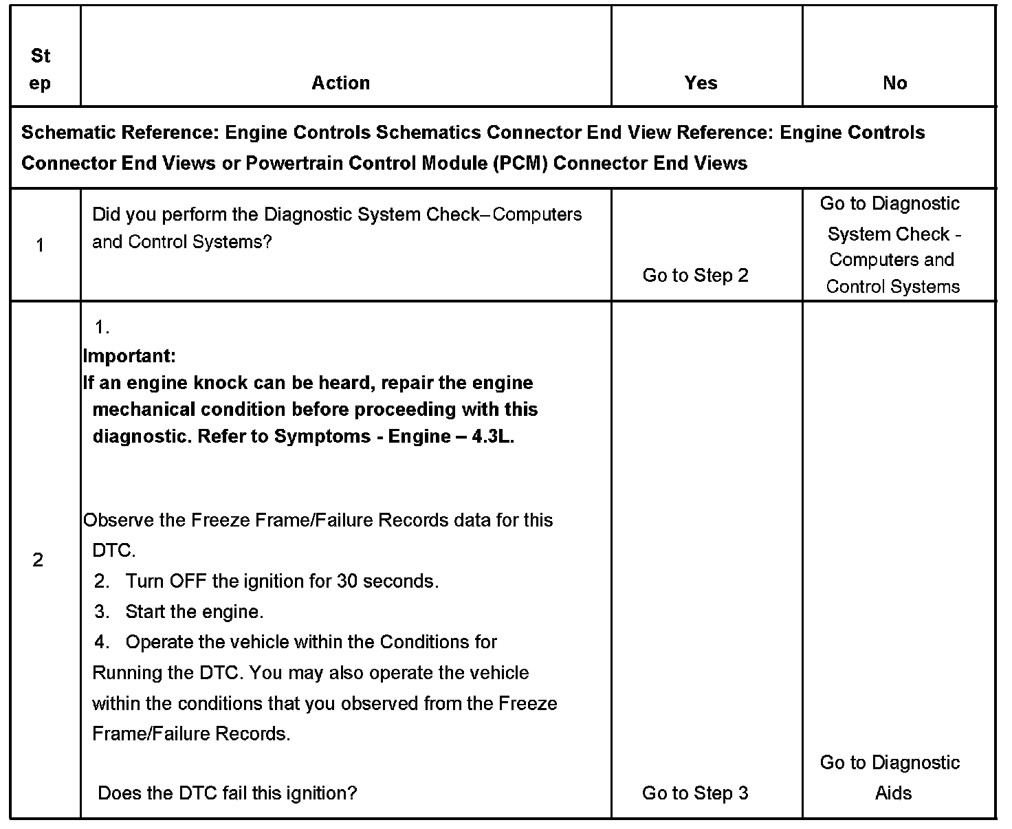 The numbers below refer to the step numbers on the diagnostic table.