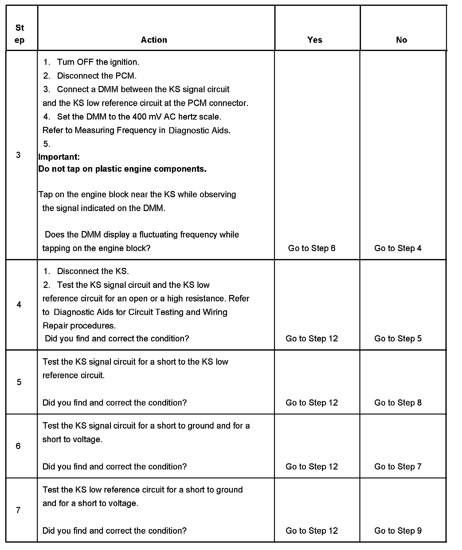 7. If the KS low reference is shorted to ground or is shorted to voltage, the KS may still produce a signal.