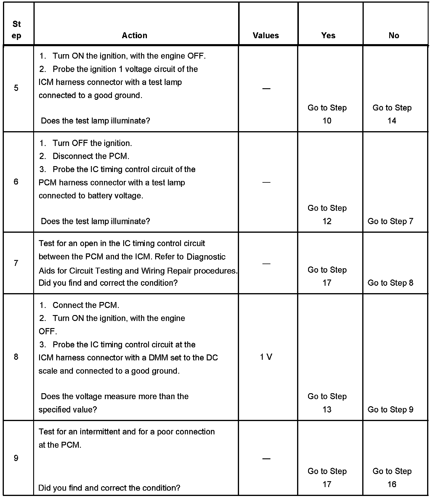 3. This step checks if the IC timing signal from the PCM is available at the ignition control module.