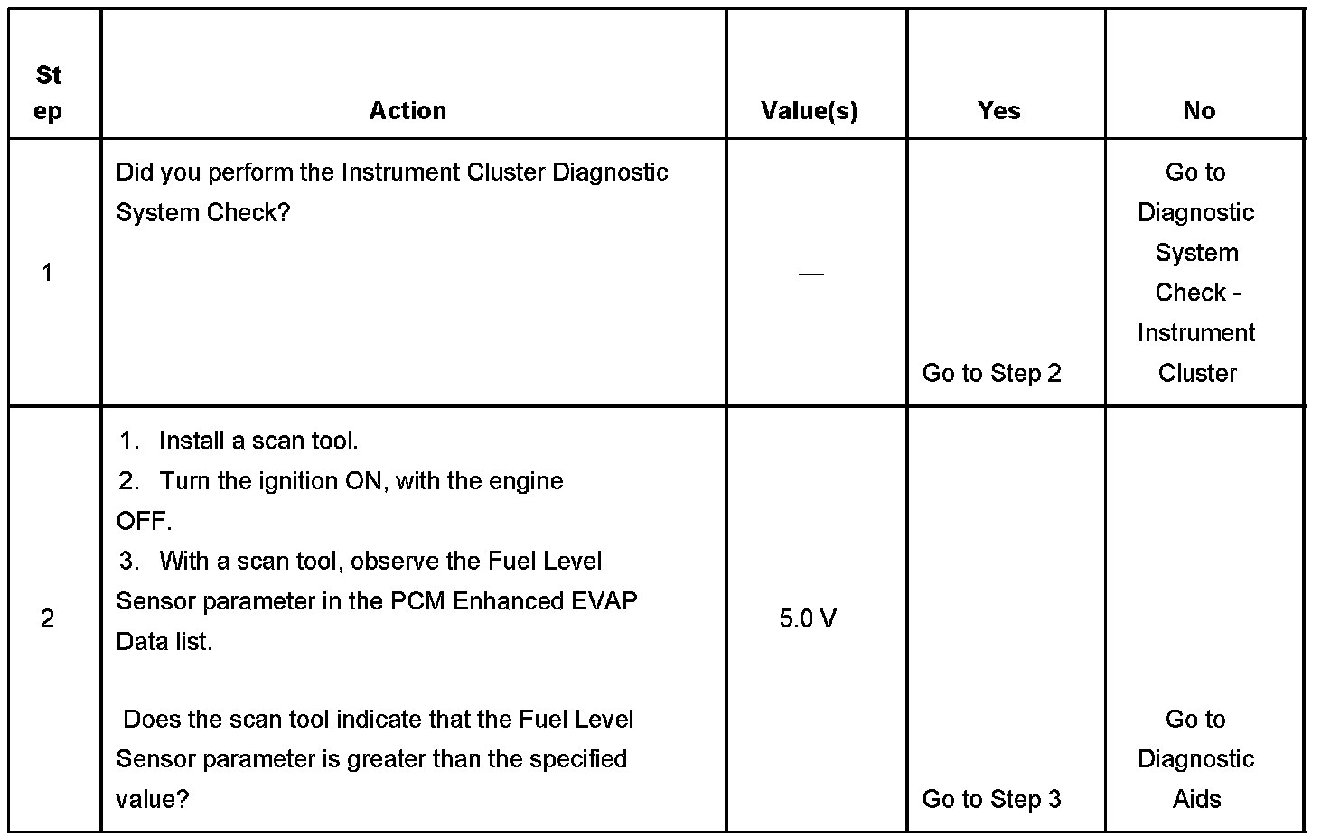 The number below refers to the step number on the diagnostic table.