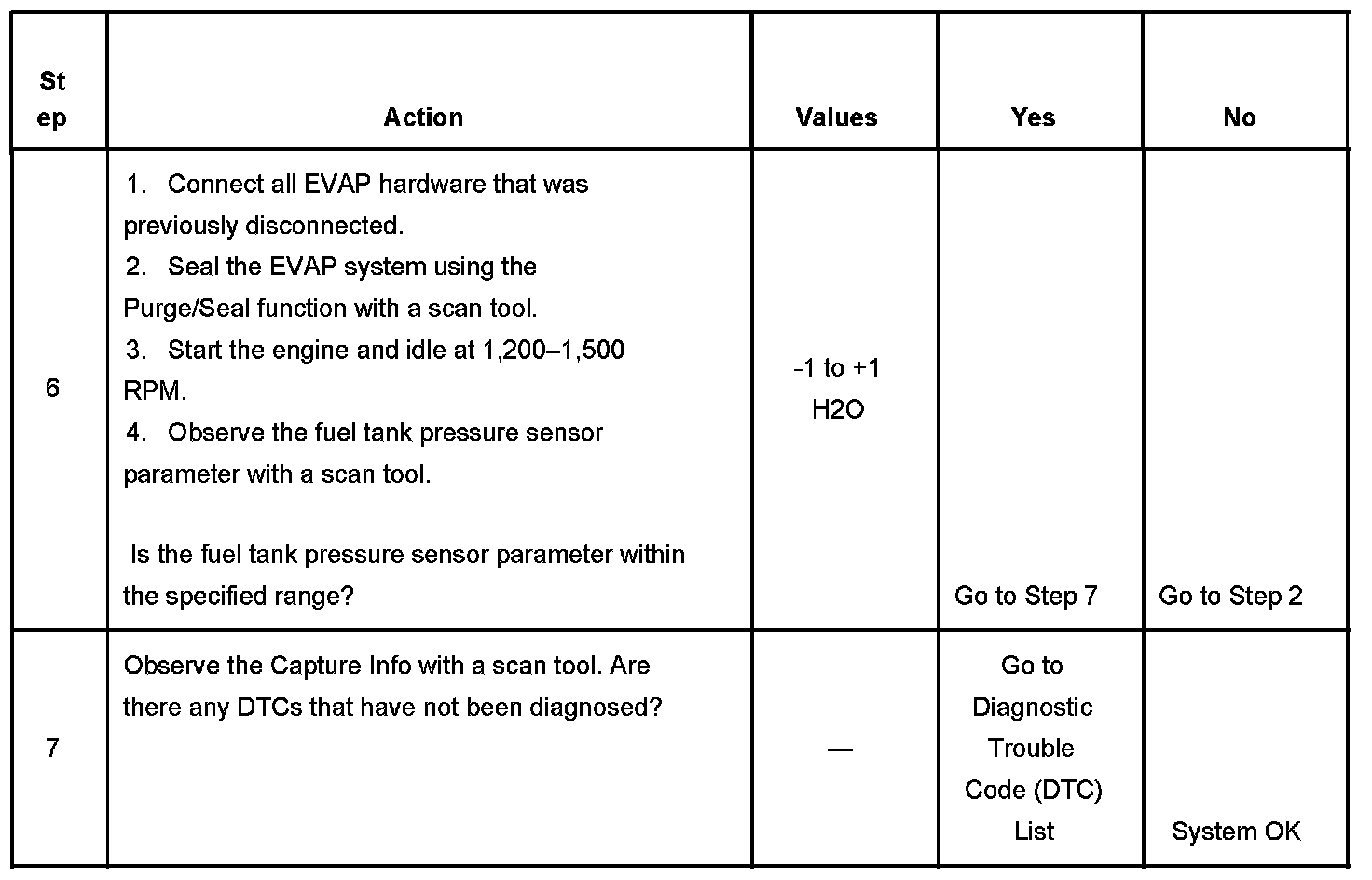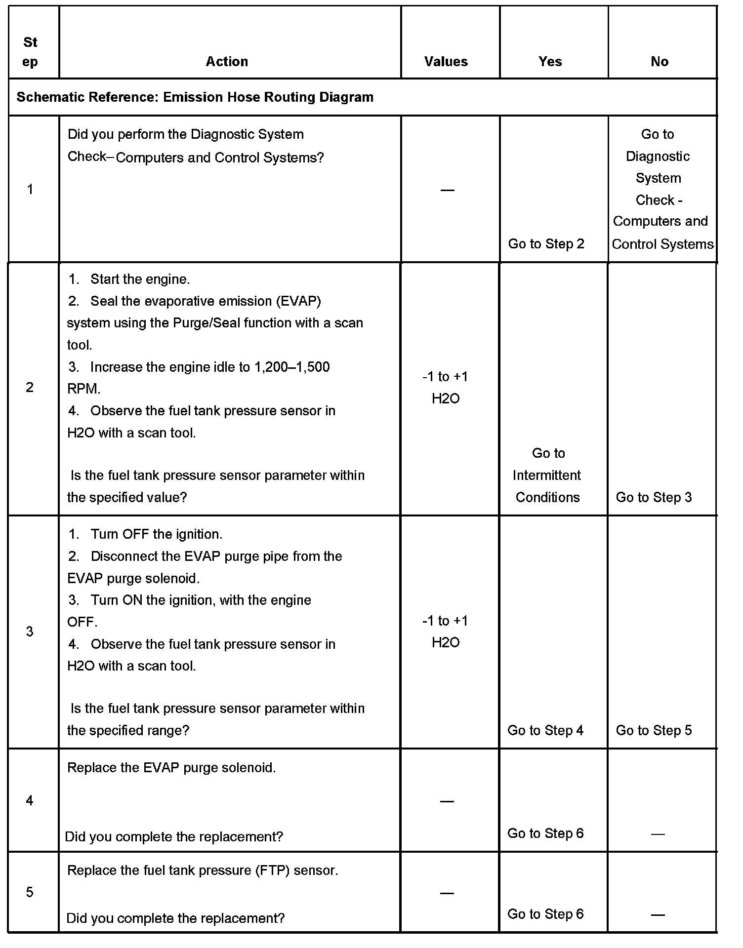 SYSTEM DESCRIPTIONThis DTC tests for undesired intake manifold vacuum flow to the evaporative emission (EVAP) system. The control module seals the EVAP system by commanding the EVAP canister purge valve Closed and the EVAP canister vent valve Closed. The control module monitors the fuel tank pressure (FTP) sensor to determine if a vacuum is being drawn on the EVAP system. If vacuum in the EVAP system is more than a predetermined value within a predetermined time, this DTC sets.