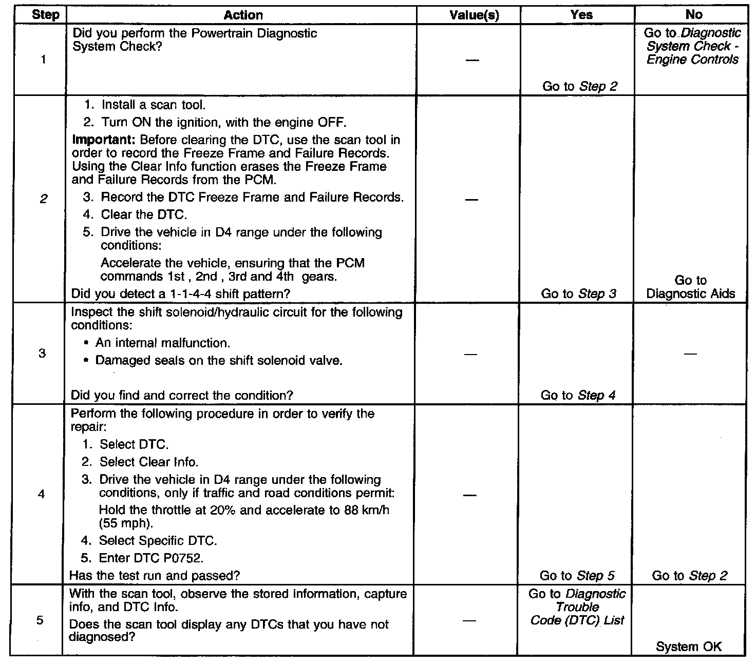 ^ The PCM stores DTC P0752 in PCM history.