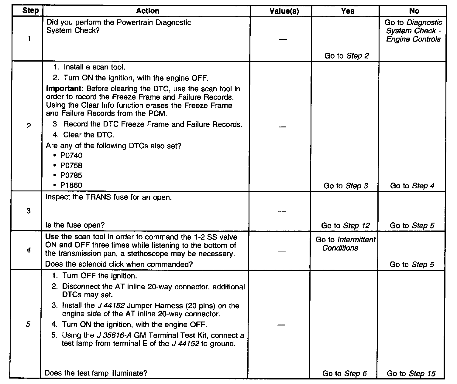 5. This step tests for power to the 1-2 SS valve from the ignition through the fuse.