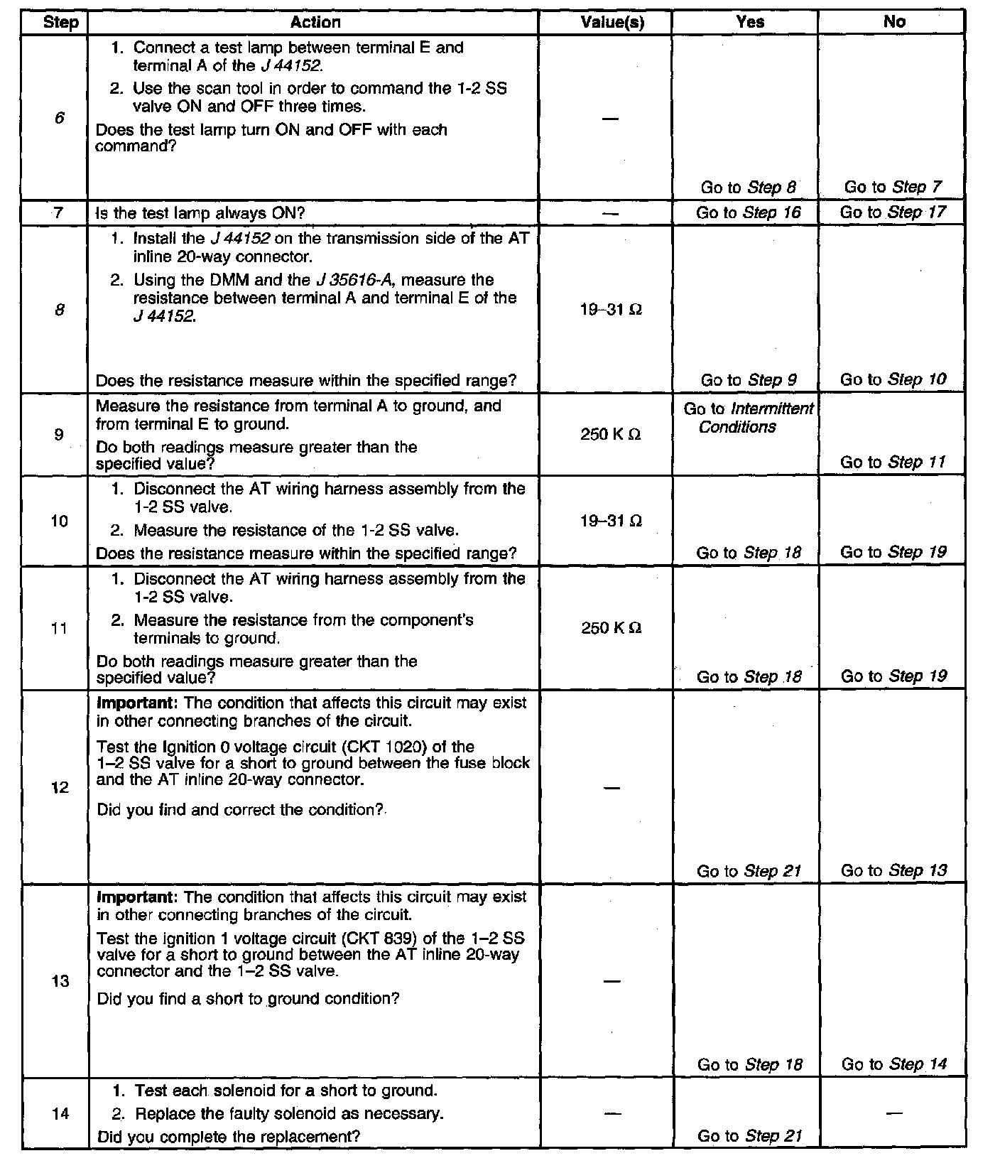 8. This step measures the resistance of the AT wiring harness assembly and of the 1-2 SS valve.