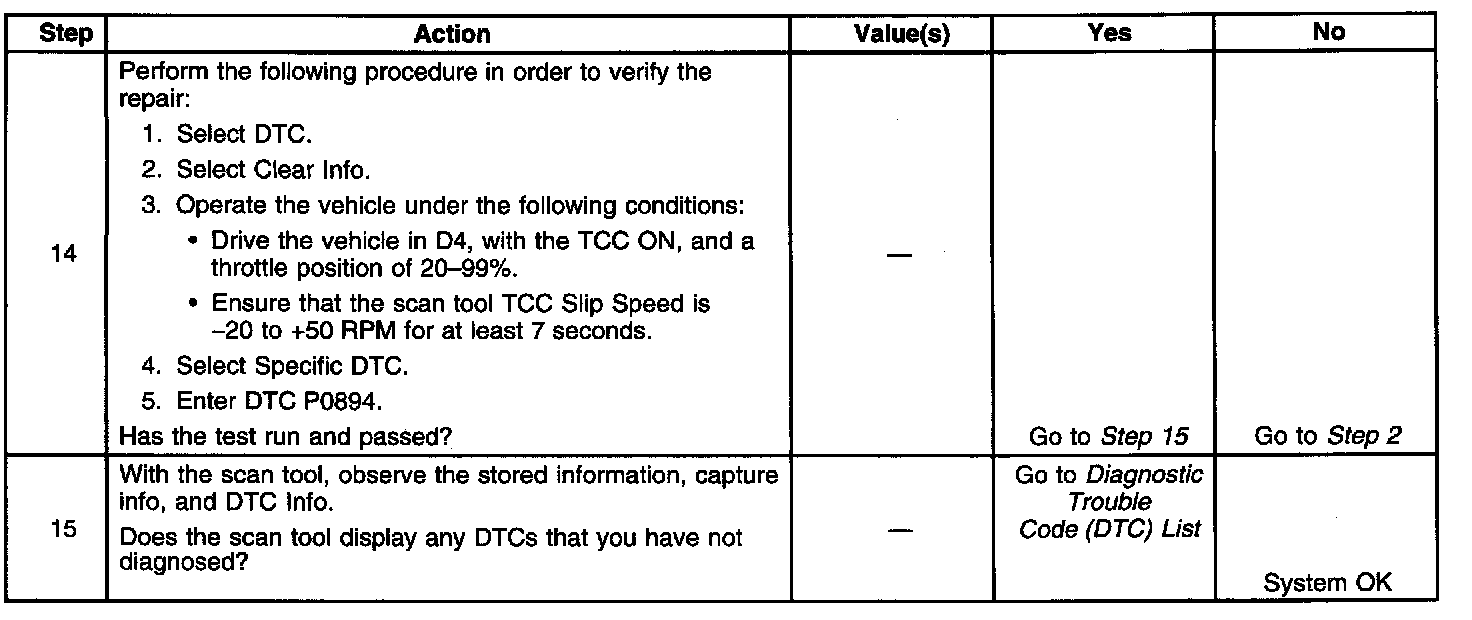 DTC P0894 sets if the following conditions occur for three TCC cycles.