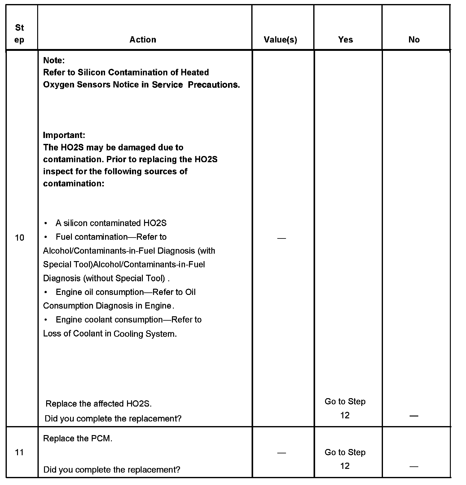 The number below refers to the step number on the diagnostic table.