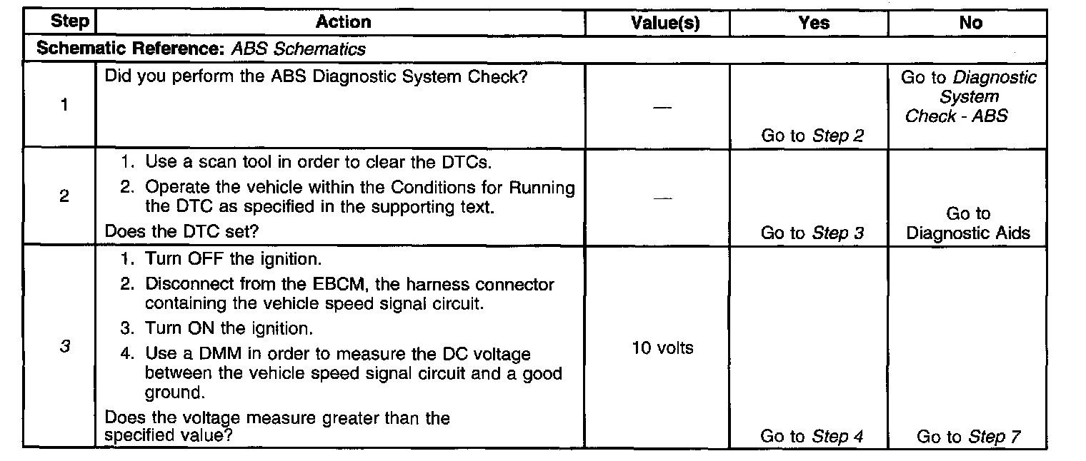 4. This step tests for a missing or erratic vehicle speed signal from the PCM. An assistant may be required in order to Perform this test.