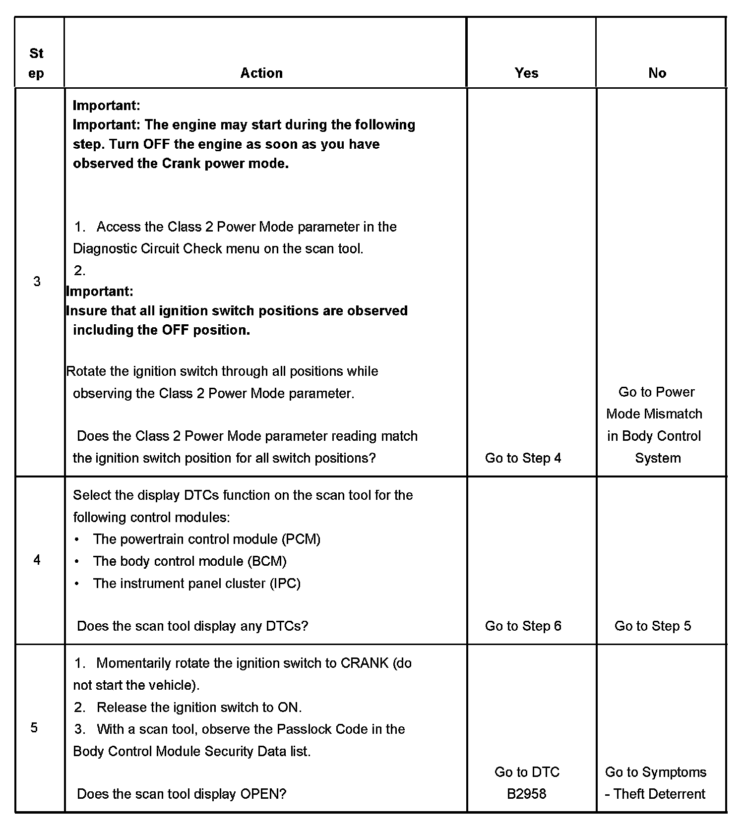5. Tests for an open in the Passlock(TM) sensor signal circuit, which may not set a DTC (B2958) under certain conditions.