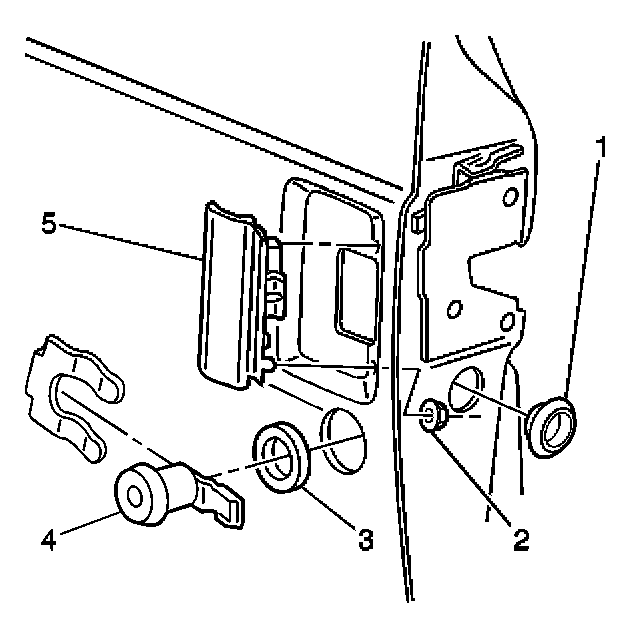 5. Remove the nuts from the door handle (4).