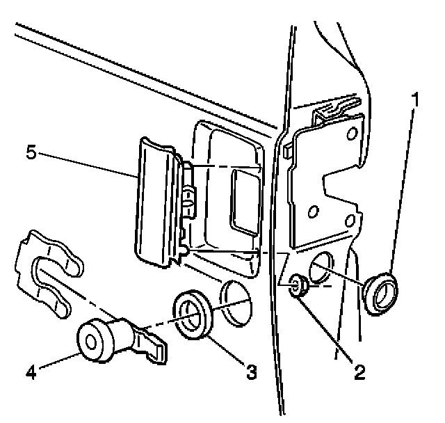 9. Remove the lock cylinder and the gasket (5) from the door.