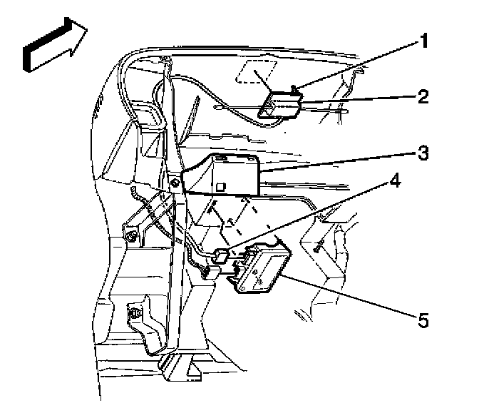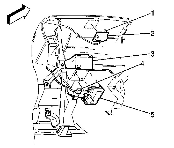 4. Remove the remote keyless entry antenna (1) from the carrier.