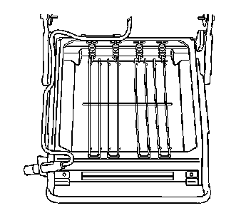2. Remove the seat back cover and pad from the seat back frame. Refer to Seat Back Cover and Pad Replacement (YC5 and YC6) (Seat Back Cover and Pad Replacement (YC5 and YC6))Seat Back Cover and Pad Replacement (YC7) (Seat Back Cover and Pad Replacement (YC7)) .