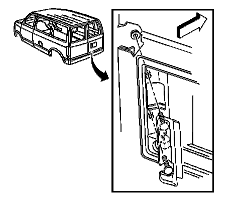 1. Remove the trim panel and the access cover. Refer to Trim Panel Replacement - Rear Door (Cargo Doors) (Trim Panel Replacement - Rear Door (Cargo Doors))Trim Panel Replacement - Rear Door (E54) (Trim Panel Replacement - Rear Door (E54)) .