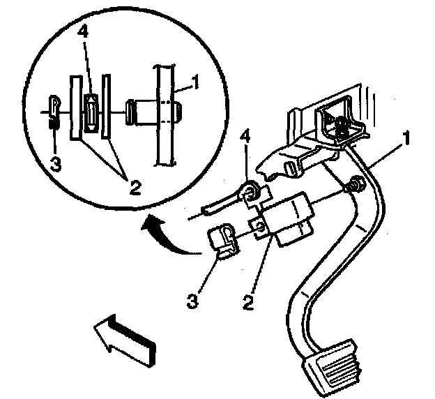 1. Remove the booster pushrod (4) and stoplamp switch (2) from brake pedal (1).