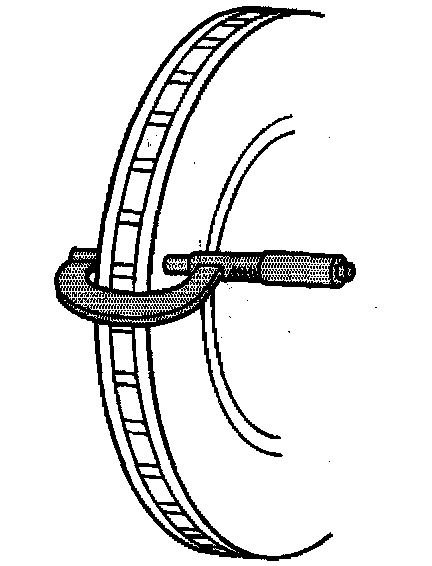 Ensure that the measurements are only taken within the friction surfaces and that the micrometer is positioned the same distance from the outer edge of the rotor, about 13 mm (1/2 inch), for each measurement.