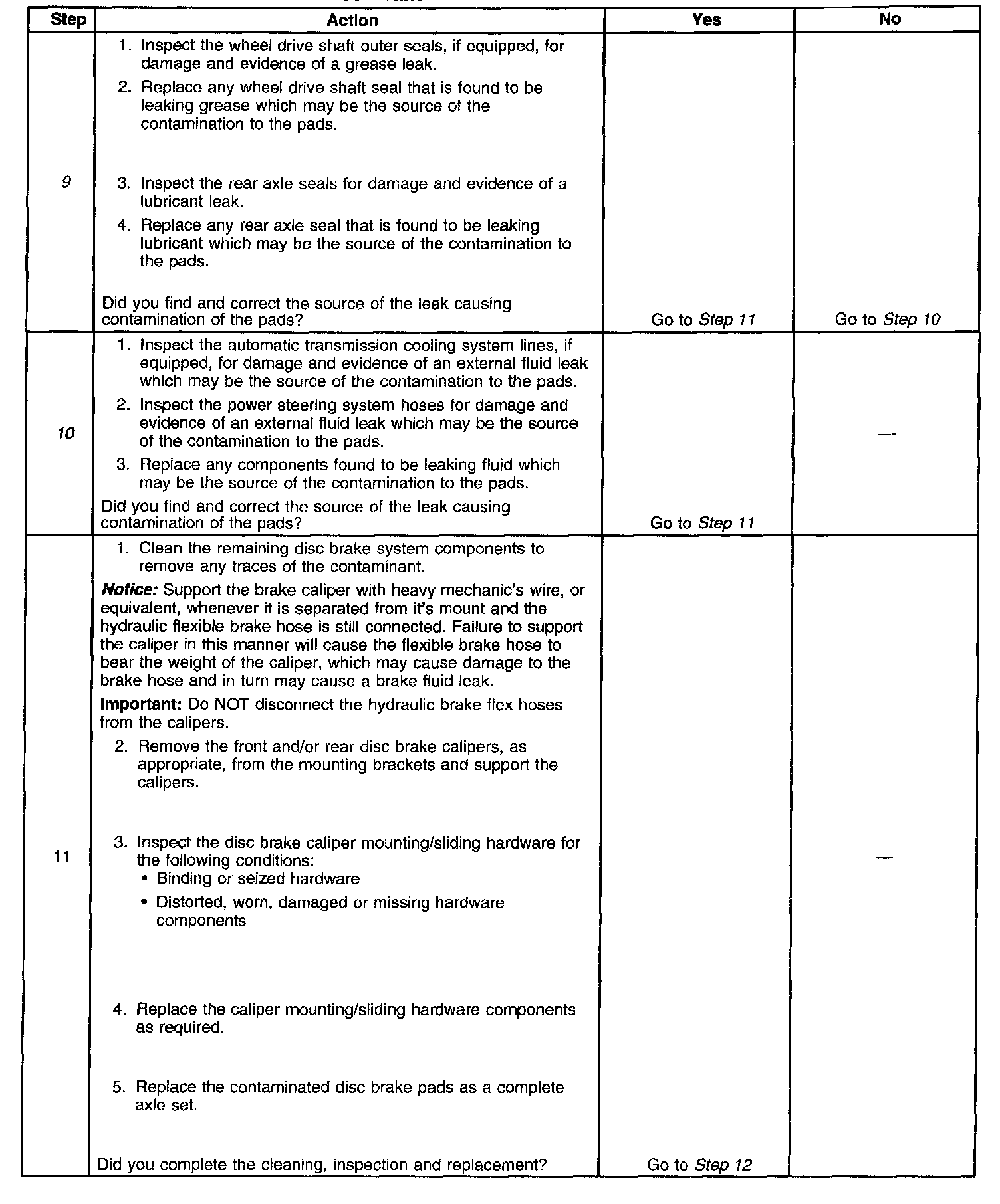 Disc Brake System DiagnosisSteps 1 Through 6: