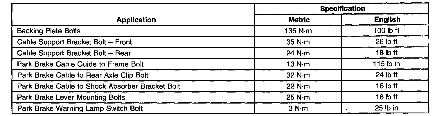Parking Brake System: Specifications