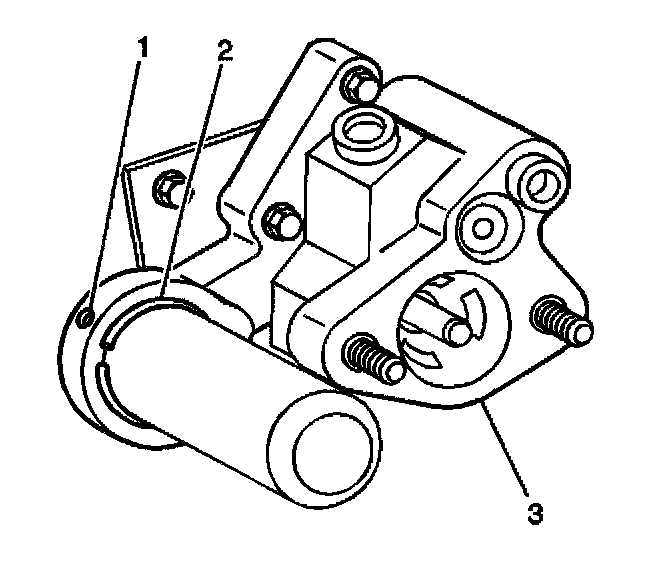 8. Rotate retaining ring (2) until either end of the ring is under the access hole (1).