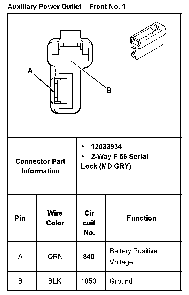 Auxiliary Power Outlet - Front No. 1: